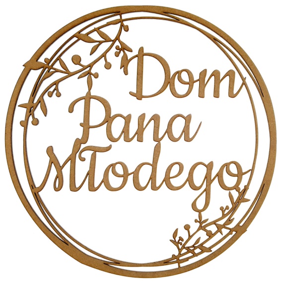 Szczegóły i Funkcjonalność: Obręcz, o przybliżonej średnicy 30 cm, wyróżnia się starannym wykonaniem. Centralnie umieszczony napis "Dom Pana Młodego" sprawia, że jest to idealna ozdoba na ścianę, nad wejście czy w innym wybranym miejscu, akcentując rolę Pana Młodego.