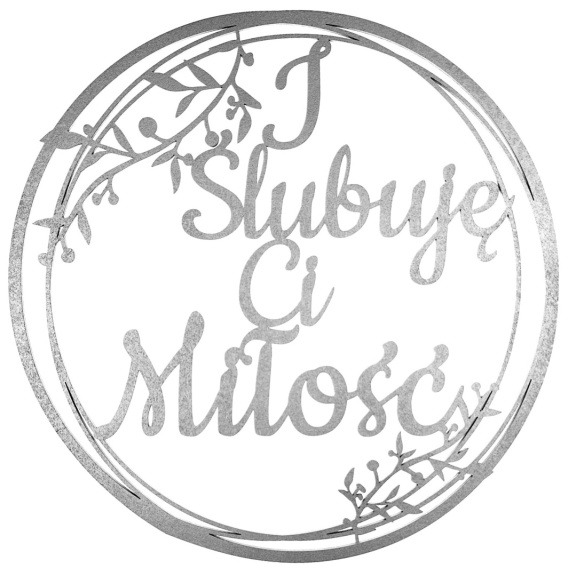 Srebrna obręcz z napisem I Ślubuję Ci Miłość 30 cm – Ozdoba Weselna