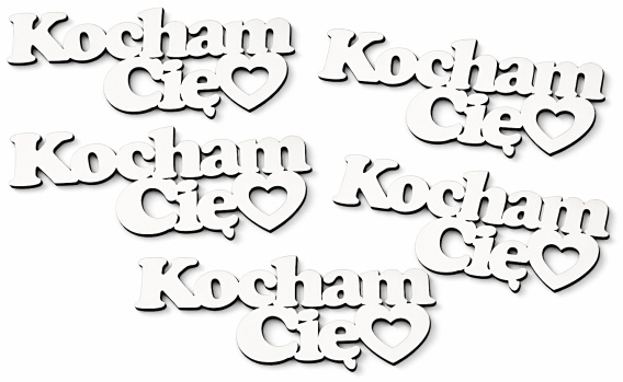Tekst: „Kocham Cię” + serce (z wyciętym środkiem)