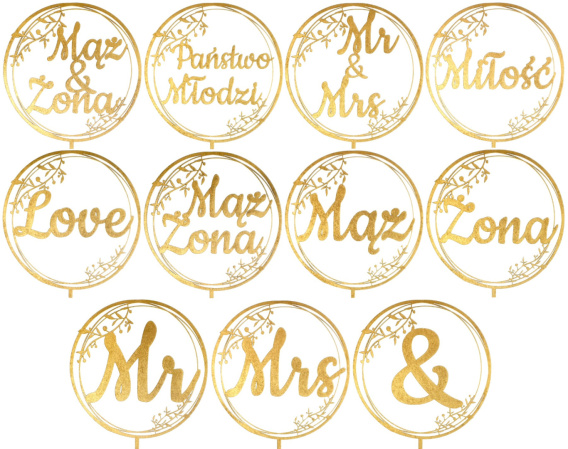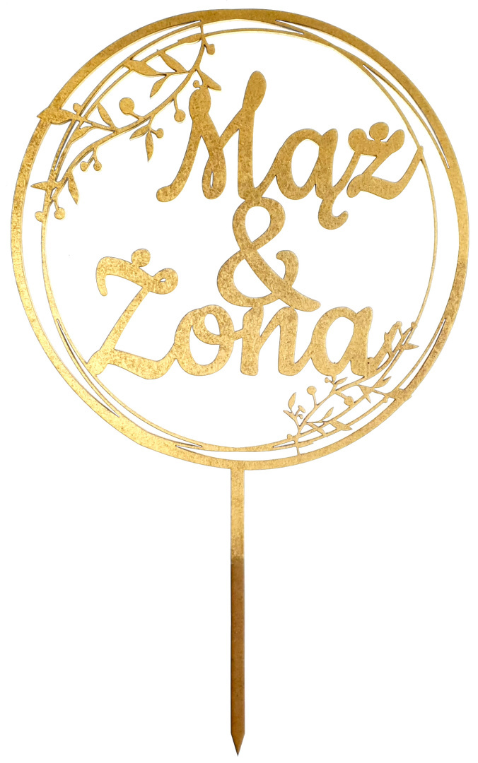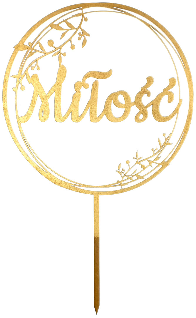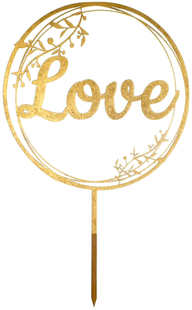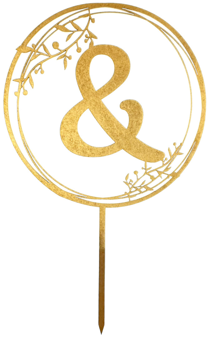 Dodaj wyjątkowy akcent do swojego tortu weselnego dzięki topperowi wyciętemu laserowo z trwałego HDF o grubości 3 mm i pomalowanemu na elegancki złoty kolor. Dekoracja jest lekka, ale solidna, a jej średnica to 17 cm, co idealnie pasuje do większości tortów.
