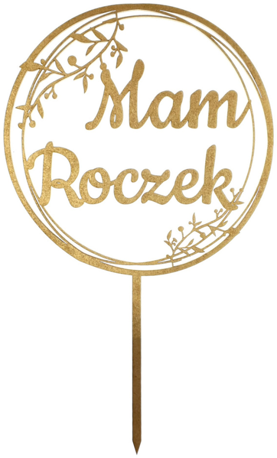 Elegancki złoty topper na roczek to idealny dodatek do urodzinowego tortu. Wykonany z lakierowanej płyty HDF, precyzyjnie wycięty laserowo, lekki i łatwy w użyciu.
